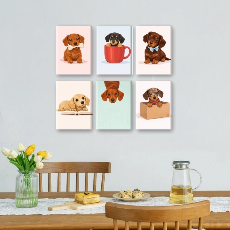 6 Mini Paintings - Cute Sausage Dogs Set