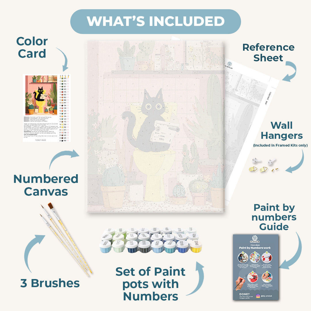 The black cat on the toilet | Paint by Number
