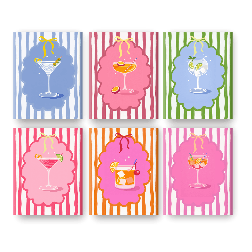 6 Mini Paintings   Trendy Cocktails Set