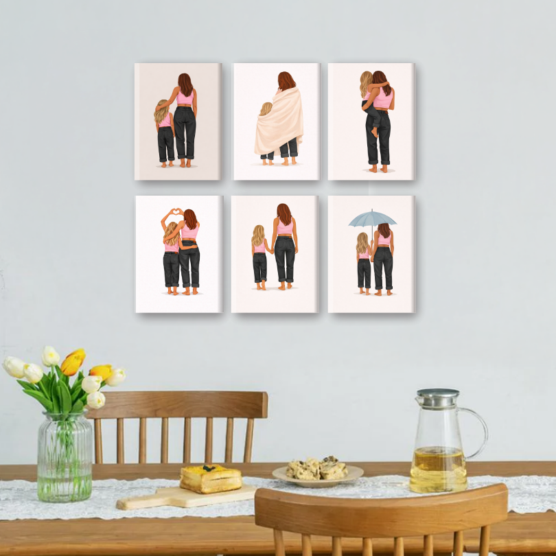 6 Mini Paintings - Mother & Daughter Love Set
