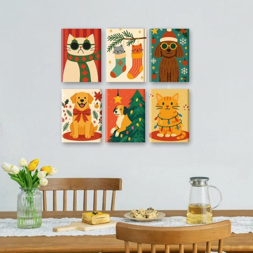 6 Mini Paintings   Cats & Dogs Christmas Set
