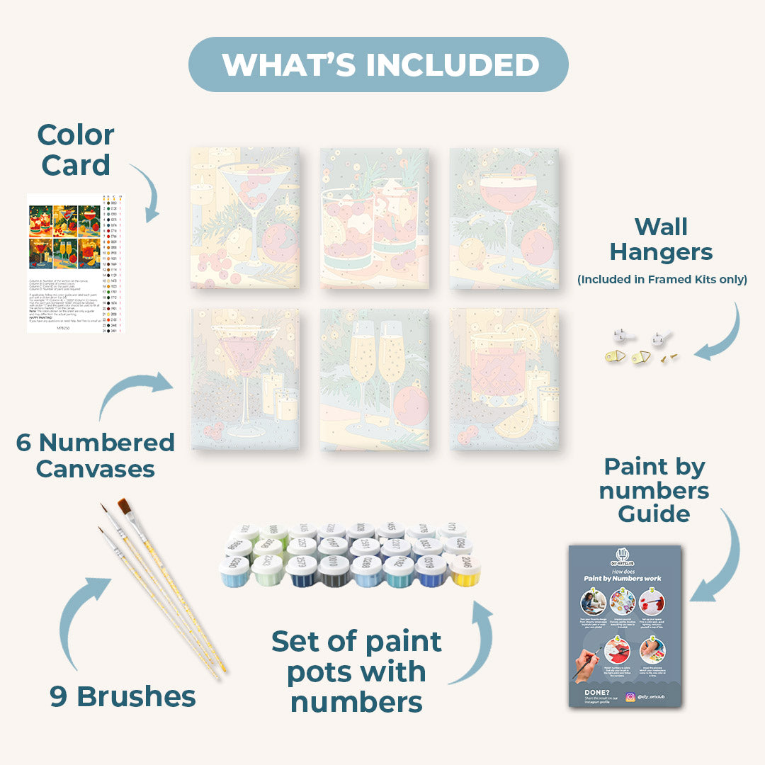 6 Mini Paintings   Festive Cocktails Set Paint by numbers